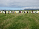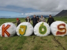 Jana Katrín, Bryndís, Mikael, Kári, Þorgeir og Guðbjartur tóku forskot á heyrúlluskreytingarnar.