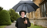 Hvað er eiginlega málið með presta og regnhlífar ?