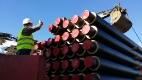 Tekið var á móti nær 100 lagnarörum frá danska fyrirtækinu LOGSTOR A/S, öll 16 metrar að lengd og því vandasamt verk.