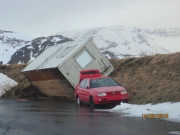 Þar á meðal vinnuhúsnæði starfsmanns á planinu, eins og meðfylgjandi mynd sýnir sem var tekin 14. mars 2015.