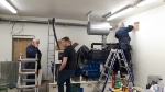 Kjartan fer yfir málin með Sören og sýnir varadæluna. |