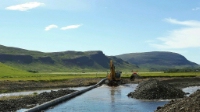 Stofnlögnin er komin að Grjóteyri. Verktakar hinkruðu meðan Kristján á Grjóteyri og Guðný í Flekkudal slóu. Enda er áætlunin að ná inn að Flekkudal í næstu viku. Það er góð spretta og sláttur víða hafinn fyrr þetta sumarið svo allt hjálpar til við að verkinu miði hratt og vel áfram.