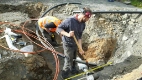 Þverun Sandsár er lokið. Stofnlögnin heldur áfram sína leið inn fyrir Meðalfellsvatn, niður að Þúfu, Blönduholti, Felli og áfram niður að Hvalfirði.