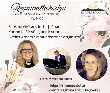 Sr. Arna Grétarsdóttir þjónar. Kórinn leiðir söng undir stjórn Sveins Arnars Sæmundssonar organista.Skírn fermingarbarns.Helga Hermannsdóttir kvenfélagskona, flytur hugvekju.