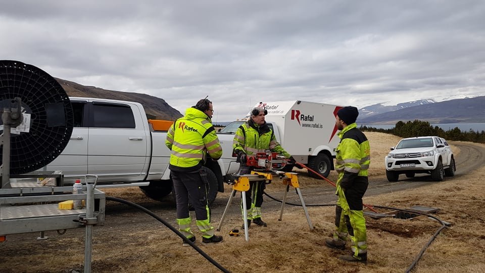 Auk þess er annar hópur á vegum Rafals á ferð um "eldra svæði", að blása ljósleiðara heim að þeim húsum sem hafa safnast saman á biðlista síðan þeir voru hér síðast.