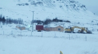 Athafnasvæði Kjósarveitna að Möðruvöllum. Frá vinstri: Borholuhús (yfir holu MV-19), loftskiljan og stöðvarhúsið. Húsin og skiljan verða síðan klædd með álklæðningu í gráum lit. |