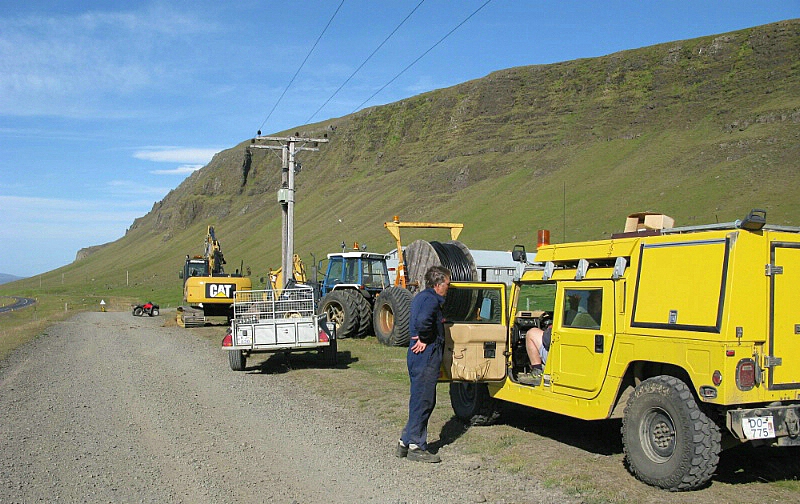 Það er Þórarinn Þórarinsson í Hlíðafæti sem plægir niður strenginn með aðstoð og umsjón starfsmanna Rarik þeirra Ásgeirs