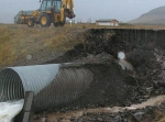 Ræsi á Hvalfjarðarvegi innan við Eyri í Kjós er veitir Silungalæk undir veginn stíflaðist í vatnavöxtum árla morguns sl. fimmtudag. Að sögn vegfaranda er lentu í því að aka veginn í niðarmyrkvi nefndan morgun var það ævintýranleg upplifun að lenda á floti á hefðbundinn akstursleið til vinnu.