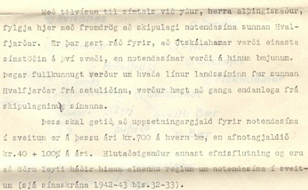 Bréf Póst-og símamálastjóra til Ólafs Thors