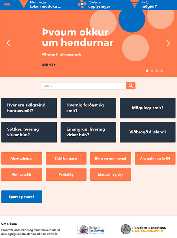 Embætti landlæknis og Ríkislögreglustjóri Almannavarnadeild hafi opnað nýjan vef vegna COVID-19 vírussins þar sem finna má góð ráð og tölulegar upplýsingar svo eitthvað sé nefnt: www.covid.is