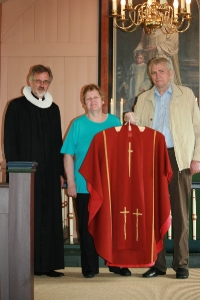 Í útivistar- og hestamannamessunni á sunnudaginn, 1.ágúst, var kirkjunni afhentur nýr hökull að gjöf. Gefendur eru þau Magnús Sæmundsson og Guðrún Ó Tómasdóttir Eyjum II í tilefni 150 ára afmæli Reynivallakirkju á síðasta ári. Gjöfin er til minningar um móður Magnúsar, Láru Magnúsdóttur húsfreyju að Eyjum II í Kjós eins og fram kemur í gjafabréfi en þar segir:
