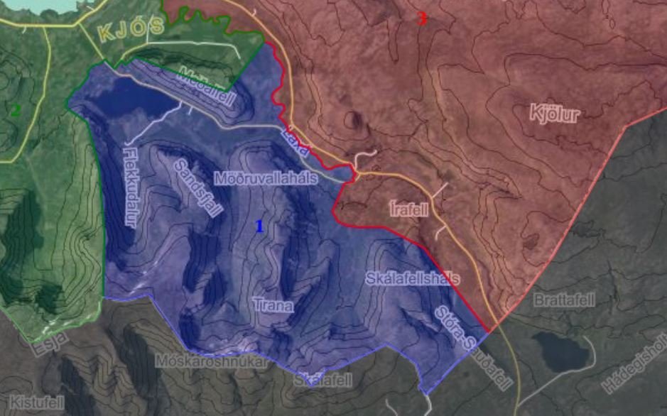 Svæðið sem er tekið þetta sumar nær frá Hjarðarholti, yfir svæðið í kringum Meðalfellsvatn og austur að Hrosshóli/Möðruvöllum, sjá bláa svæðið á myndinni.