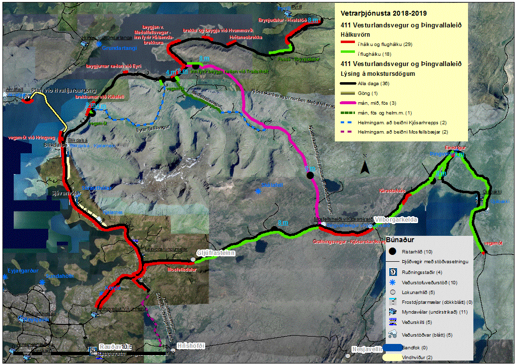 Viðmiðunarreglur um snjómokstur og hálkuvarnir má sjá hér